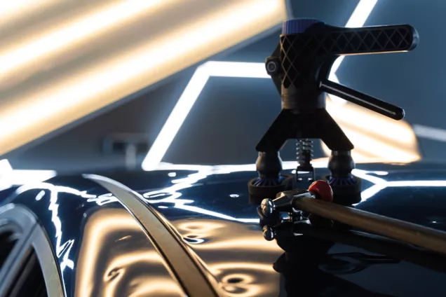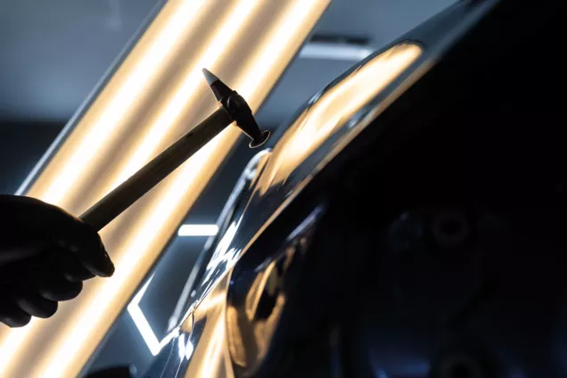 Dans le cadre de la réparation des dégâts causés par la grêle, les ateliers Garage plus et Carrosserie plus tirent et pressent délicatement les bosses présentes sur la carrosserie sans endommager la peinture. Cette technique qui permet de réparer la carrosserie sans mastiquer ni repeindre offre deux avantages majeur : un gain de temps et une réduction importante des coûts de réparation.