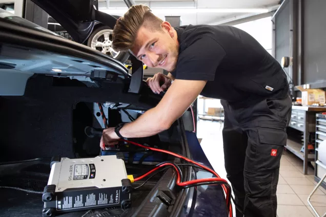 Le officine Garage plus e Carrosserie plus offrono quindi una gamma completa di servizi per garantirne il corretto funzionamento ed evitare guasti imprevisti. Questi servizi iniziano con la verifica dello stato della batteria, compresa la misurazione della tensione, della capacità di carica e della potenza di avviamento. Le officine verificano anche il corretto funzionamento del sistema di ricarica, in particolare dell'alternatore e dei collegamenti elettrici.